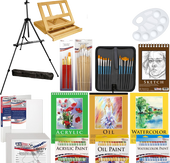 • Deluxe artist painting set with aluminum floor easel wood drawer table easel